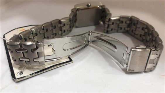 OROLOGIO LORUS DONNA CASSA E CINTURINO IN ACCIAIO CON QUADRANTE QUADRATO FONDO BLU CHIUSURA DEPLOYANTE.