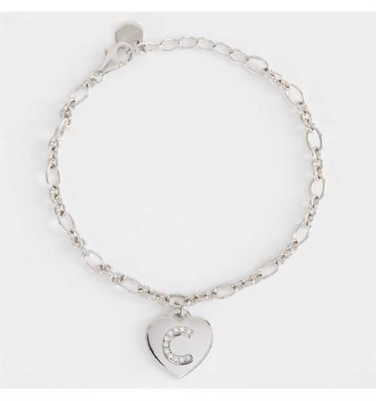 Bracciale donna , argento 925 , lunghezza cm 19 regolabile , maglia catena 3+1 , cuore pendente con iniziale C , zirconi bianchi incastonati con griffe. Scatola e garanzia originali.