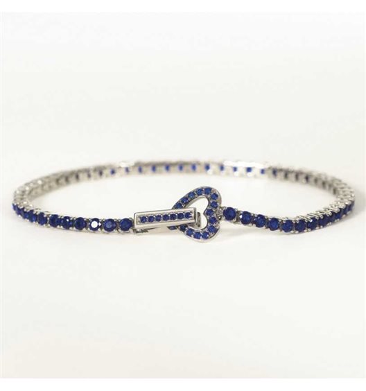 Braccialetto tennis da donna realizzato in argento 925% e zirconi blu dal diametro di 2,5 mm. Chiusura di sicurezza con cuore dalle dimensioni di 1,3 mm x 1,3 mm LUNGHEZZA 16