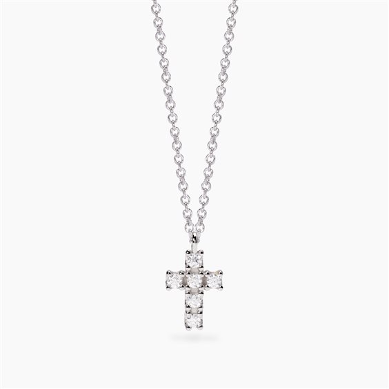 Girocollo in argento 925/°°° rodiato con catena rolò 1.2 mm e pendente croce 7.2x9.5 mm con diamanti lab-grown kt 0.16 F-VS, lunghezza regolabile da 39 a 43 cm.