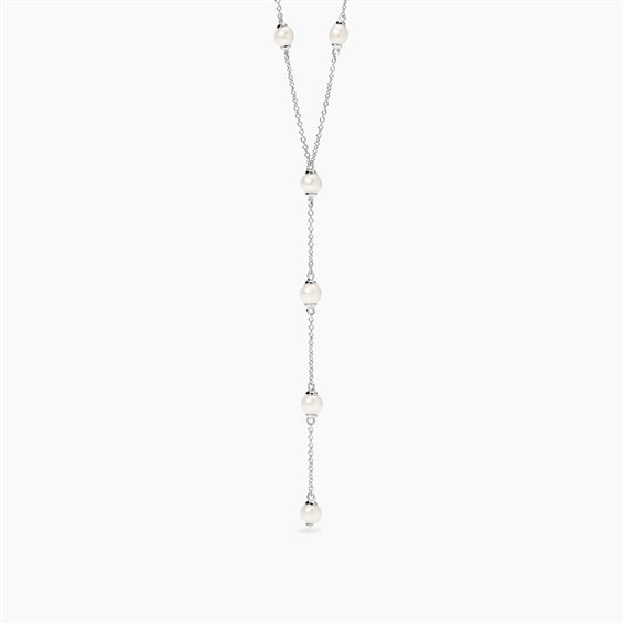 Girocollo in argento 925/°°° rodiato con catena rolò 1.3 mm e pendente 7 cm con perle coltivate Ø 4.5-5 mm, lunghezza regolabile da 40 a 45 cm