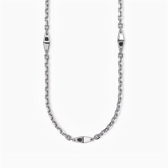 Collana in argento 925/°°° rodiato con catena rolo' ed inserti con zirconi neri Ø 2.0 mm, lunghezza cm 50