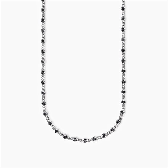 Collana in argento 925/°°° rodiato con zirconi neri Ø 2 mm, lunghezza regolabile da 43 a 48 cm