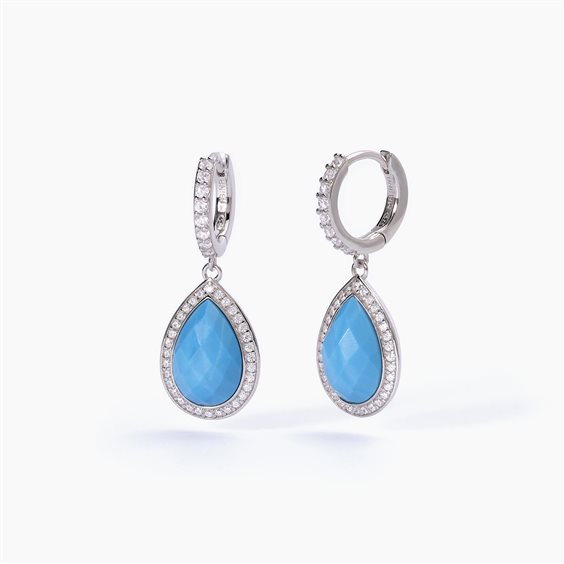 Orecchini donna pendenti , argento 925 rodiato , turchesi , zirconi.