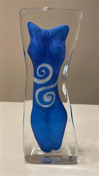 SCULTURA SAGOMA DONNA BLU SATINATO CON DECORI ASIMMETRICI IN CRISTALLO SVEDESE MALERAS. MATS JONASSON MALERAS è la patria dell'artigianato tradizionale svedese del cristallo e di una forte tradizione artistica svedese e rappresenta una nuova generazione di designer e artigiani. Mats Tomasson è un maestro del dettaglio e, da oltre 30 anni, ha impresso il suo marchio sulla vetreria di Mäleras, dove l'azienda è sinonimo di creatività brillante. Un oggetto in vetro di Mäleräs Glassworks dà la garanzia di avere una creazione in cristallo completamente svedese.