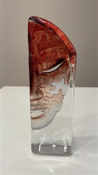 SCULTURA VOLTO PUZZLE ROSSO IN CRISTALLO SVEDESE MALERAS. MATS JONASSON MALERAS è la patria dell'artigianato tradizionale svedese del cristallo e di una forte tradizione artistica svedese e rappresenta una nuova generazione di designer e artigiani. Mats Tomasson è un maestro del dettaglio e, da oltre 30 anni, ha impresso il suo marchio sulla vetreria di Mäleras, dove l'azienda è sinonimo di creatività brillante. Un oggetto in vetro di Mäleräs Glassworks dà la garanzia di avere una creazione in cristallo completamente svedese.