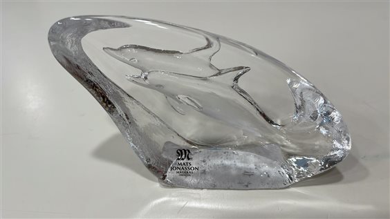 SCULTURA CON COPPIA DELFINI IN CRISTALLO SVEDESE MALERAS DELLA COLLEZONE WILDLIFE MINIATURES. MATS JONASSON MALERAS è la patria dell'artigianato tradizionale svedese del cristallo e di una forte tradizione artistica svedese e rappresenta una nuova generazione di designer e artigiani. Mats Tomasson è un maestro del dettaglio e, da oltre 30 anni, ha impresso il suo marchio sulla vetreria di Mäleras, dove l'azienda è sinonimo di creatività brillante. Un oggetto in vetro di Mäleräs Glassworks dà la garanzia di avere una creazione in cristallo completamente svedese.