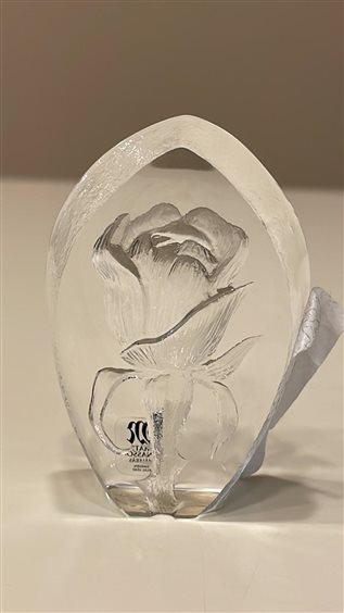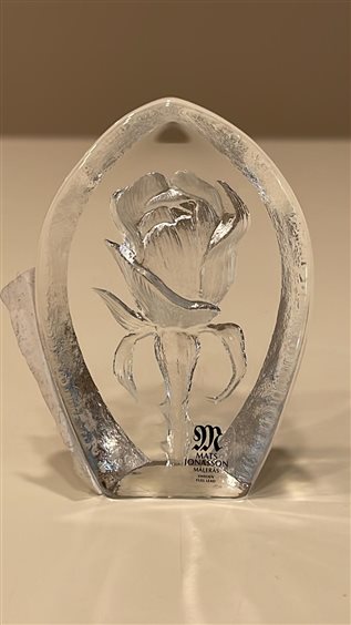 SCULTURA CON ROSA IN CRISTALLO SVEDESE MALERAS DELLA COLLEZONE WILDLIFE MINIATURES. MATS JONASSON MALERAS è la patria dell'artigianato tradizionale svedese del cristallo e di una forte tradizione artistica svedese e rappresenta una nuova generazione di designer e artigiani. Mats Tomasson è un maestro del dettaglio e, da oltre 30 anni, ha impresso il suo marchio sulla vetreria di Mäleras, dove l'azienda è sinonimo di creatività brillante. Un oggetto in vetro di Mäleräs Glassworks dà la garanzia di avere una creazione in cristallo completamente svedese.