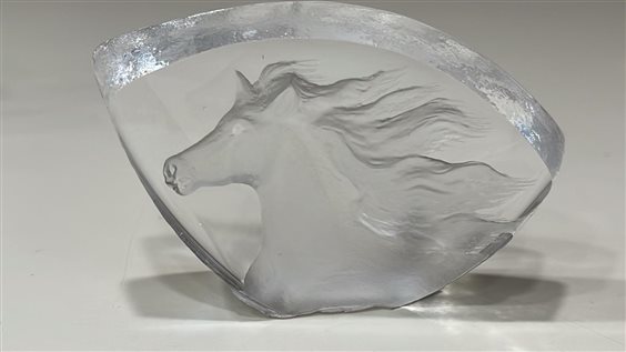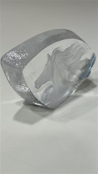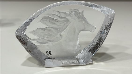 SCULTURA CON CAVALLO IN CRISTALLO SVEDESE MALERAS DELLA COLLEZONE WILDLIFE MINIATURES. MATS JONASSON MALERAS è la patria dell'artigianato tradizionale svedese del cristallo e di una forte tradizione artistica svedese e rappresenta una nuova generazione di designer e artigiani. Mats Tomasson è un maestro del dettaglio e, da oltre 30 anni, ha impresso il suo marchio sulla vetreria di Mäleras, dove l'azienda è sinonimo di creatività brillante. Un oggetto in vetro di Mäleräs Glassworks dà la garanzia di avere una creazione in cristallo completamente svedese.