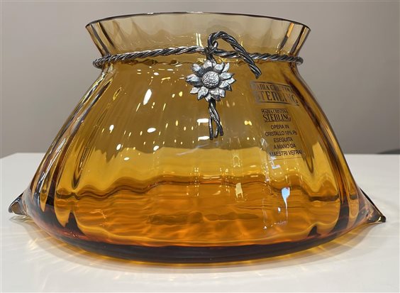 CENTROTAVOLA FIRMATO MARIACRISTINA STERLING A FORMA DI SACCOTTINO IN CRISTALLO CON DECORI IN ARGENTO, GIRASOLE. OPERE ESEGUITE A MANO DA MAESTRI VETRAI