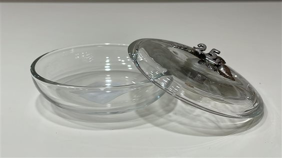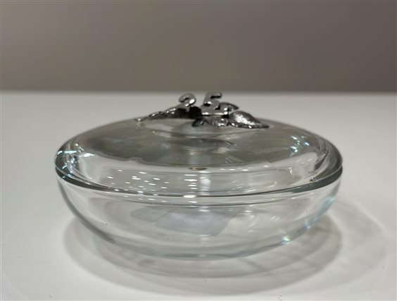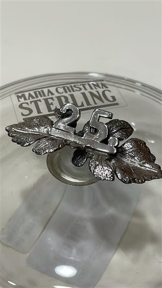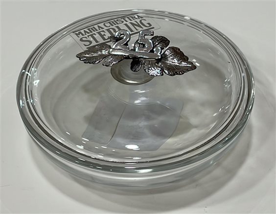 COFANETTO VENTICINQUESIMO ANNIVERSARIO DI MATRIMONIO, NOZZE D'ARGENTO FIRMATO MARIACRISTINA STERLING. DECORI FOGLIE E NUMERO 25 IN ARGENTO. OPERE ESEGUITE A MANO DA MAESTRI VETRAI.