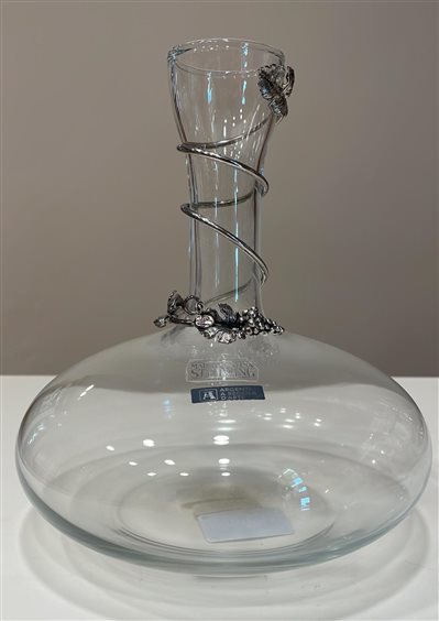 DECANTER MARIACRISTINA STERLING IN CRISTALLO CON DECORI IN ARGENTO 925 UVA CON FOGLIE DI VITE. OPERE ESEGUITE A MANO DA MAESTRI VETRAI.