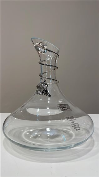 DECANTER MARIACRISTINA STERLING IN CRISTALLO CON DECORI IN ARGENTO 925 UVA CON FOGLIE DI VITE. OPERE ESEGUITE A MANO DA MAESTRI VETRAI.