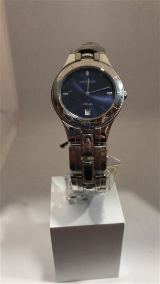 OROLOGIO MONDIA COLLEZIONE AFFINITY CASSA E CINTURINO ACCIAIO QUADRANTE FONDO BLU SOLO TEMPO CHIUSURA DEPLOYANTE.