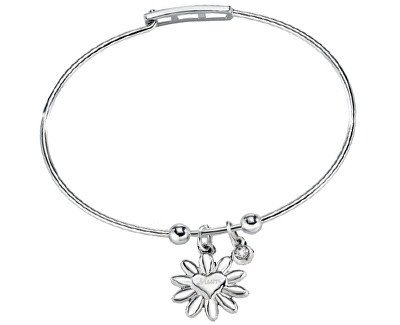 Bracciale donna rigido in acciaio 316L , diametro cm 6 , fiore pendente cm 2 con incisione MUM , diamante selezionato incastonato.
