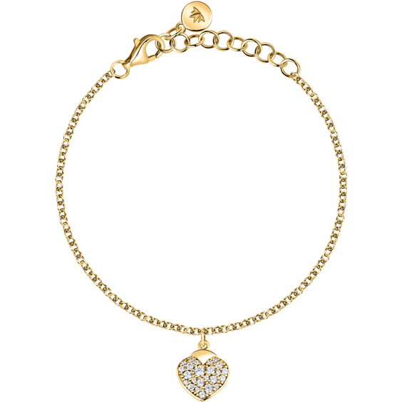 Bracciale Morellato Talismani - SAVZ19 - Genere : Donna, Misura: 16+3cm, Colore: Oro, Morellato experience: Everyday, Modello: Pendente, Materiale: Acciaio, Peso: 3.200 gr, Pietra: Cristalli, Colore pietra: Bianco, Simbolo: Cuore, Certificato di autenticità: Sì, Confezione: Originale Morellato