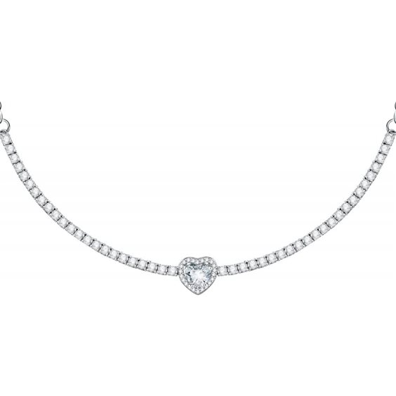 Collana mezzo tennis con zirconi e centrale a cuore e catena rolò.
