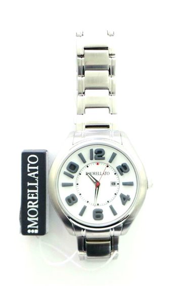 Orologio uomo Morellato mod. Panarea cassa e cinturino in acciaio quadrante bianco diametro mm.44 numeri romani e indici grigi. Immagine indicativa , la confezione può variare in forma e colore.