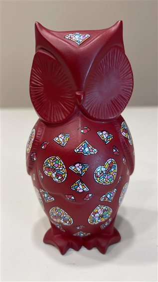 Gufo Nadal portafortuna rossa con decori multicolor. Statuina realizzata in polvere di marmo. Certifichiamo che questa figura, fatta a mano, fa parte di un'edizione limitata, numerata e che ha superato un rigoroso controllo di qualità nelle installazioni de La Eliana (Valencia), Spagna. Tutte le figure di NADAL Studio sono registrate a livello nazionale e internazionale.