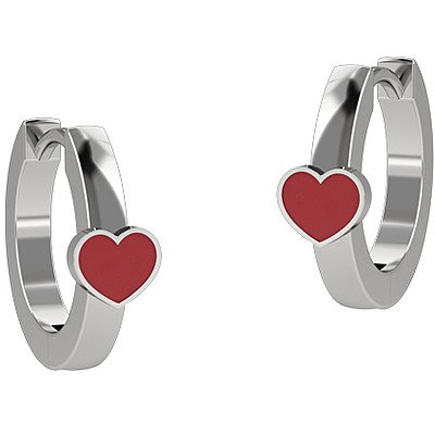 Orecchini Da Donna E Bambina Di Nanan Della Collezione Nanàn Bijou. Orecchini In Argento 925 A Forma Di Cerchio Cuore Rosso E Chiusura A Incastro.