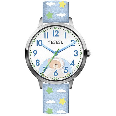 Prodotto: orologio solo tempo bambino Nanan Watches NOR0013 Orologio Solo Tempo Da Bambino Di Nanan Della Collezione Watches Collection. Orologio Con Cassa Realizzata In Acciaio Di Forma Rotonda, Di Colore Argento. Il Diametro Della Cassa È 28 Mm. Il Display È Analogico, Con Numeri Colorati. Il Cinturino È In Pelle Di Color Azzurro. La Resistenza All'Acqua È Di 3 Atm. Il Movimento È Al Quarzo. La Referenza È: Nor0013. Questo solo tempo verrà spedito con Scatola Originale Nanan
