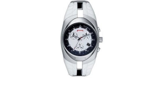 Cronografo con movimento al quarzo, vetro zaffiro, datario al 4 e impermeabile fino a 100 metri.