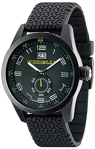 OROLOGIO PIRELLI UOMO CASSA IN ACCIAIO NERA CON QUADRANTE FONDO NERO SOLO TEMPO E CINTURINO CAUCCIU NERO CON CHIUSURA ARDIGLIONE ACCIAIO NERO.