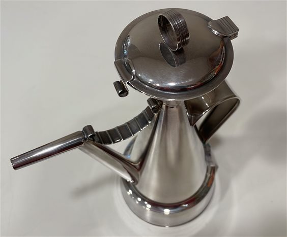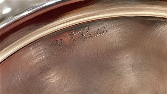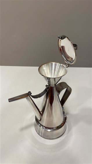 PREGIATO PEZZO D'ARGENTERIA DELL'ARTIGIANATO FIORENTINO. L'ALTA QUALITA' DEI MATERIALI E DELLA LAVORAZIONE SONO GARANTITI DAI MARCHI LEGALI IMPRESSI SUL PEZZO. OLIERA RENATO RADDI IN ARGENTO MASSICCIO 800, GR 292, SUPERFICIE LISCIA E LUCIDA.