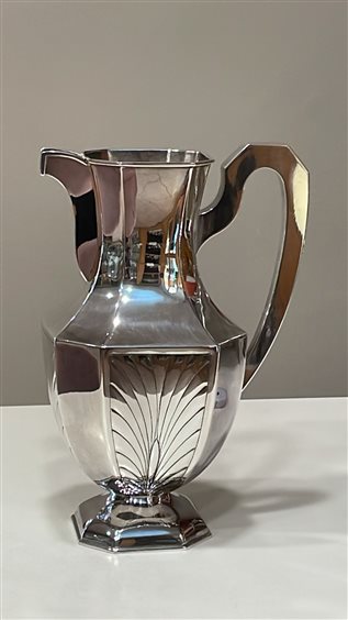 PREGIATO PEZZO D'ARGENTERIA DELL'ARTIGIANATO FIORENTINO. L'ALTA QUALITA' DEI MATERIALI E DELLA LAVORAZIONE SONO GARANTITI DAI MARCHI LEGALI IMPRESSI SUL PEZZO. ANFORA A BASE OTTOGONALE RENATO RADDI IN ARGENTO MASSICCIO 800, GR 1023. CESELLATO A MANO.