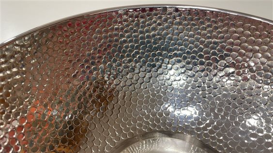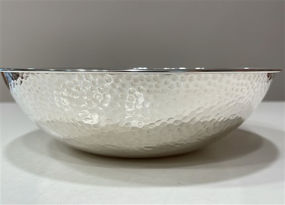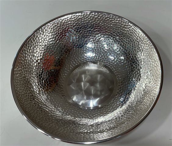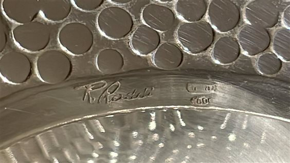 PREGIATO PEZZO D'ARGENTERIA DELL'ARTIGIANATO FIORENTINO. L'ALTA QUALITA' DEI MATERIALI E DELLA LAVORAZIONE SONO GARANTITI DAI MARCHI LEGALI IMPRESSI SUL PEZZO. CITOLA TONDA RENATO RADDI IN ARGENTO MASSICCIO 800, GR 170, SUPERFICIE MARTELLATA E BORDO LISCIO. LAVORATA A MANO.