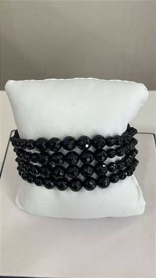 BRACCIALE RAJOLA COLLEZIONE MUST IN PELLE NERA CON ONICE NERO, CHIUSURA IN ACCIAIO INOSSIDABILE CON MARCHIO IN ORO BIANCO KT 18.