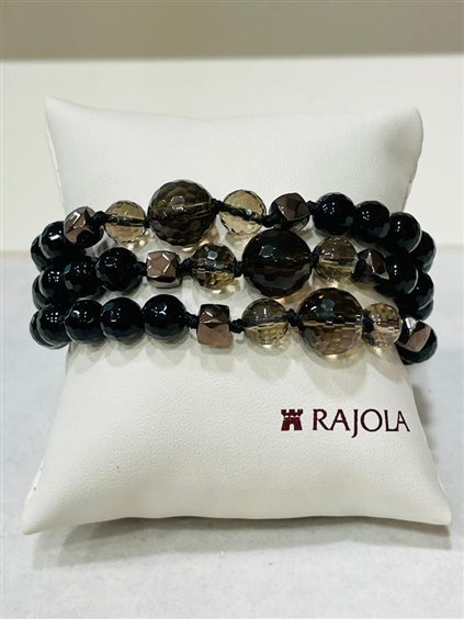 BRACCIALE SOLEIL RAJOLA A 3 FILI CON ONICE EMATITE QUARZO FUME', CHIUSURA GANCIO IN ONICE E MARCHIO IN ORO GIALLO KT18.