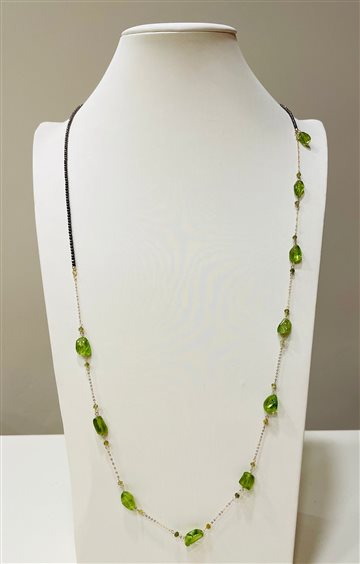 COLLANA ANITA RAJOLA IN ORO GIALLO KT 18 CON EMATITE MARRONE, PERIDOTO, GROSSULARIA.