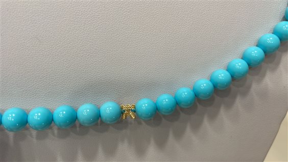 COLLANA CORSICA CAPRICCI DI RAJOLA IN PASTA DI TURCHESE CON GIADA VERDE MENTA, INSERTI IN ARGENTO 925 PLACCATO ORO GIALLO, SENZA CHIUSURA, MISURA COLLANA 100 CM.