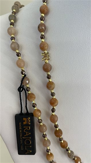COLLANA RAJOLA COLLEZIONE CECILIA, PIETRA DI SOLE CON EMATITE DORATA CON MARCHIO IN ORO GIALLO KT 18.