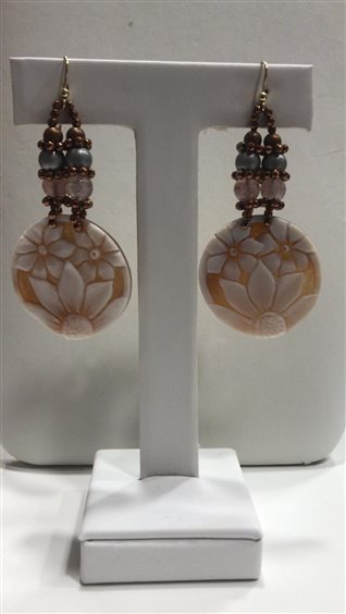 ORECCHINI RAJOLA MALIA IN ORO GIALLO CON PERLE DI EMATITE BRONZO QUARZO ROSA E CAMMERO.