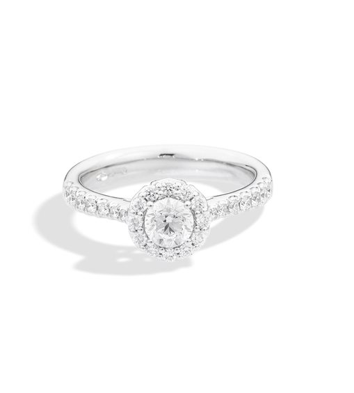 Solitario Halo oro bianco 18 kt e diamanti naturali taglio brillante