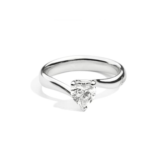 Solitario valentin in oro bianco 18 kt con diamante taglio brillante forma cuore.