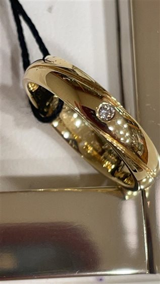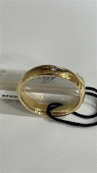 ANELLO RECARLO MODELLO FEDE IN ORO GIALLO KT 18 CON DIAMANTE TAGLIO BRILLANTE KT 0.04. L'ANELLO PRESENTA UN RIGATO SEMPRE ORO GIALLO KT 18.