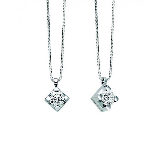 COLLANA PUNTO LUCE RECARLO IN ORO BIANCO KT 18 CON DIAMANTE TAGLIO BRILLANTE KT 0.185, MISURA COLLANA 45 CM CHIUSURA MOSCHETTONE.