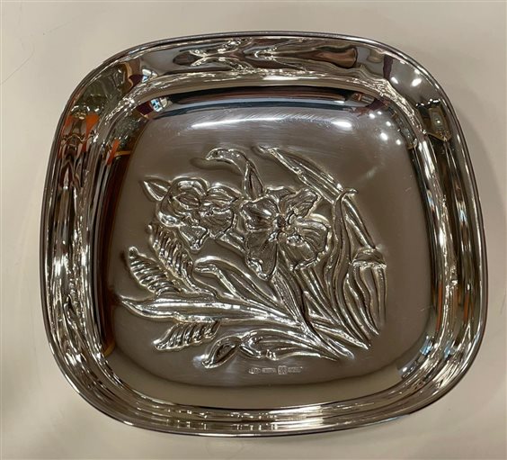 PREGIATO PEZZO D'ARGENTERIA DELL'ARTIGIANATO FIORENTINO. L'ALTA QUALITA' DEI MATERIALI E DELLA LAVORAZIONE SONO GARANTITI DAI MARCHI LEGALI IMPRESSI SUL PEZZO. CITOLA QUADRATA RICCI IN ARGENTO MASSICCIO 800, GR 184, CON INCIOSIONE FIORI. BORDO LISCIO E SUPERFICIE LUCIDA.