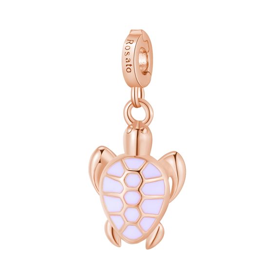 Charm in argento 925‰ e placcatura oro rosa a forma di tartaruga con smalto bianco. Significato: Vita Dimensioni charm: 21,7 mm