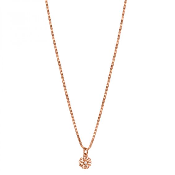 Collana corta in argento 925‰, placcatura oro rosa, 1 cubic zirconia bianco e pendente a forma di margherita