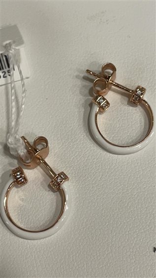 Orecchini Da Donna Di Rosato Della Collezione Storie. Gioiello Realizzato In Argento 925‰ Galvanica Oro Rosa Con Smalto Bianco E 32 Zirconi Bianchi. Dimensioni:15 Mm. La Referenza È Rzo006,