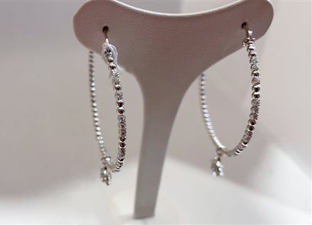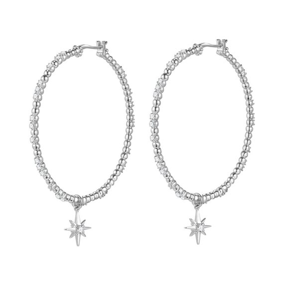 Orecchini Rosato a cerchio in argento 925‰ con pendenti a forma di stella polare e 4 zirconi bianchi. Dimensioni orecchini mm 60.