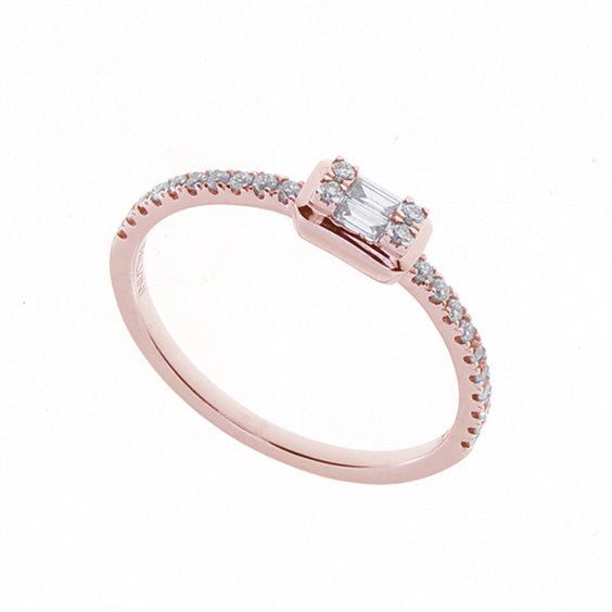 ANELLO SALVINI IN ORO ROSA KT 18 CON DIAMANTI TAGLIO BRILLANTE KT 0.13GH E TAGLIO BAQUETTE KT 0.04G. MISURA ANELLO 13.