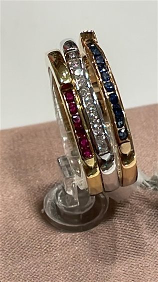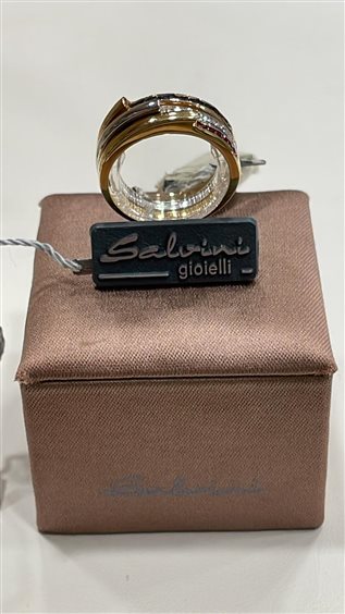 ANELLO SALVINI DI ORO GIALLO E BIANCO KT 18 CON ZAFFIRO KT 0.24 RUBINO KT 0.14 E BRILLANTI KT 0.12 H. MISURA ANELLO 15.PESO ANELLO 8.30 GR.