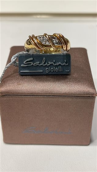 ANELLO SALVINI IN ORO GIALLO KT 18 CON PAVè DI DIAMANTI TAGLIO BRILLANTE KT 0.03H. MISURA ANELLO 15. PESO 5.60 GR.