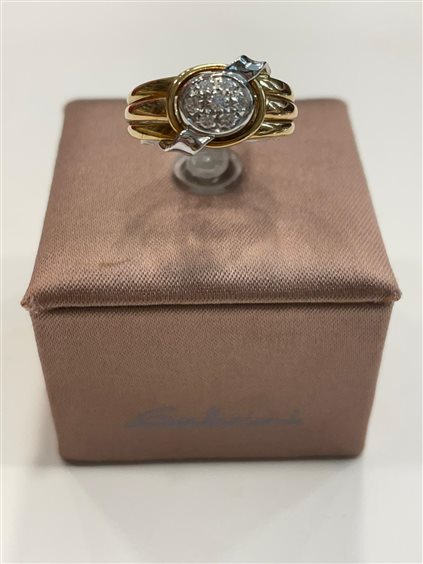 ANELLO SALVINI IN ORO GIALLO KT 18 CON PAVè DI DIAMANTI TAGLIO BRILLANTE KT 0.12 H. MISURA ANELLO 13. PESO 5.90 GR.