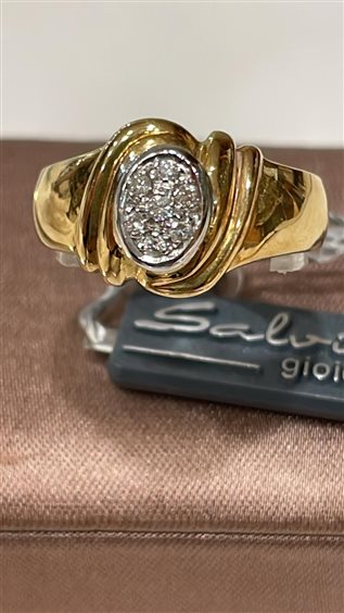 ANELLO SALVINI IN ORO GIALLO KT 18 CON PAVè DI DIAMANTI TAGLIO BRILLANTE KT 0.08 H. MISURA ANELLO 16.PESO ANELLO 4.60 GR.